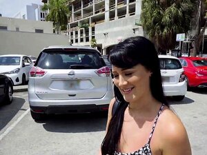 La morena ucraniana Elle Rose muestra sus tetas después de ver dinero en efectivo y luego en un lugar oculto en un edificio abandonado, se folla una polla enorme a un extraño con medias