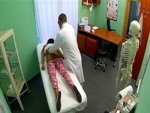 Paciente rubia europea cachonda con grandes tetas le hace una mamada y una paja a su doctor en el baño y luego en su oficina lo folla duro en la mesa de examen
