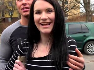 Hermosa chica mostrando tetas en público por dinero. Hermosa morena checa mostrando sus tetas en público por efectivo y luego un extraño le folla la garganta y el coño en un lugar oculto al aire libre