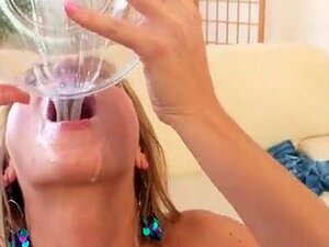 Ho se corre leche del culo. La rubia ho da enema y chorrea leche del culo en fetiche solo