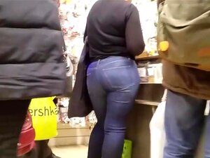 MILF sexy con un culo redondo y caliente en jeans ajustados,